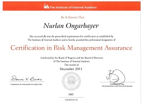 - CRMA (The IIA / ИВА, Certification in Risk Management Assurance / Сертификация в области аудита систем управления рисками),