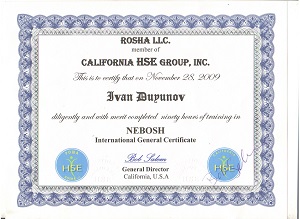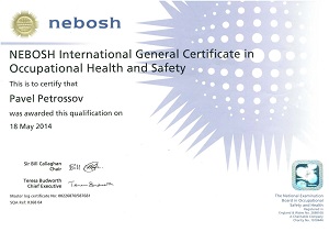 Все наши сотрудники являются дипломированными специалистами в области ОТ, ПБ и ООС, а также имеют Международную сертификацию NEBOSH, а также сертифицированы международными комитетами в области Аудита, Производственной безопасности, Экологии и иных финансовых институтов.